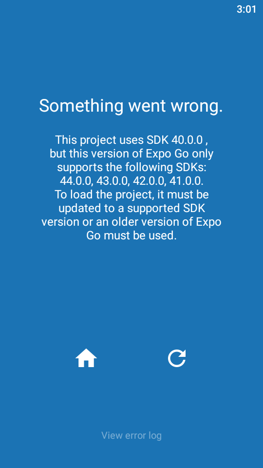 這種情況也發生在最近剛接觸的React Native上面,這次買的線上教學影片 都是用EXPO來建立專案,還沒碰到套件deprecated 的問題,就先遇到了 EXPO SDK 版本過低無法使用手機EXPO App的問題: