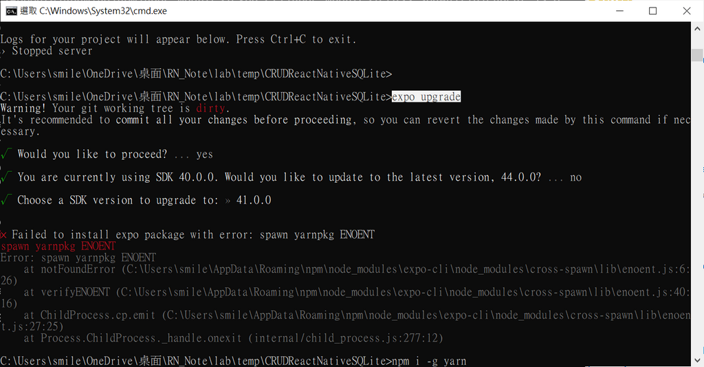 but ! EXPO 的更新要透過 yarn 而不是 npm 所以要另外安裝 yarn
