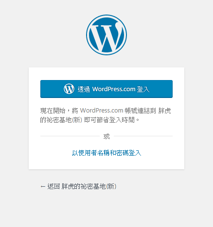做完後登入畫面大概會長這樣,只能用wordpress.com的帳號登入